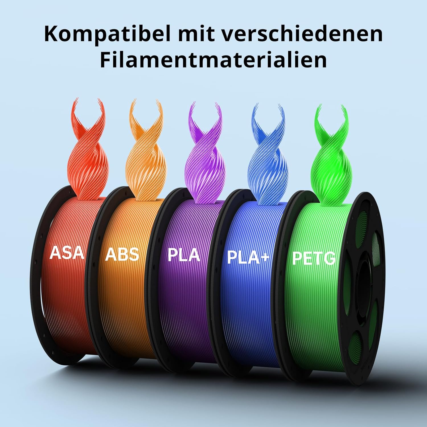Dank seines Temperaturspektrums und seiner robusten Mechanik kannst du eine Vielzahl von Filamenten verwenden: