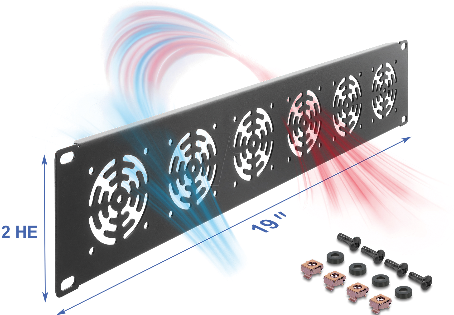 DELOCK 67415 – 19„ Rackblende, 2 HE, für 6 Lüfter, dunkelgrau
