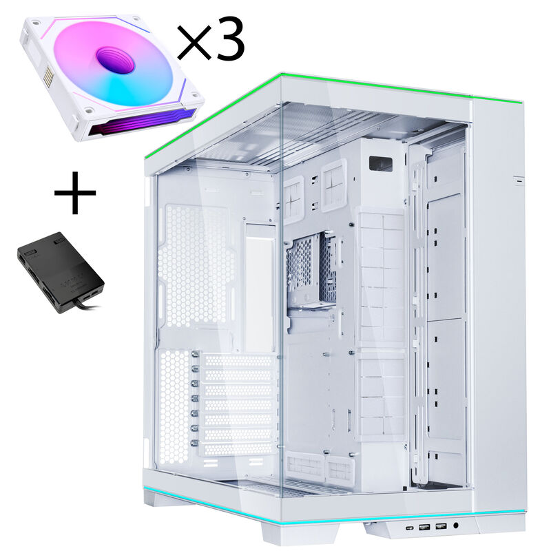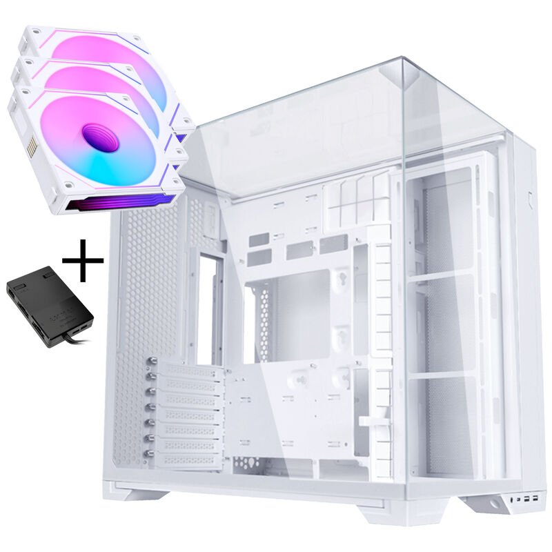 Lian Li O11 Dynamic EVO RGB PC-Gehäuse Bundle, Midi-Tower, ARGB, Tempered Glass + 3x UNI FAN SL-INF Reverse Blade Lüfter – weiß