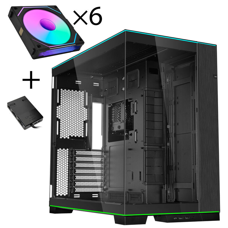 Lian Li O11 Dynamic EVO RGB PC-Gehäuse Bundle, Midi-Tower, ARGB, Tempered Glass + 6x UNI FAN SL-INF Reverse Blade Lüfter – schwarz