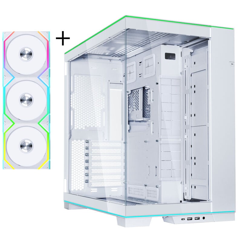 Lian Li O11 Vision Compact – weiß + 3x UNI FAN SL-INF 120 ARGB Reverse Blade PWM Lüfter – 120mm