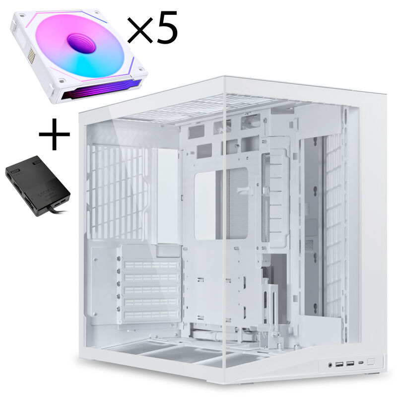Lian Li O11 Dynamic EVO RGB PC-Gehäuse Bundle, Midi-Tower, ARGB, Tempered Glass + 6x UNI FAN SL-INF Reverse Blade Lüfter – weiß