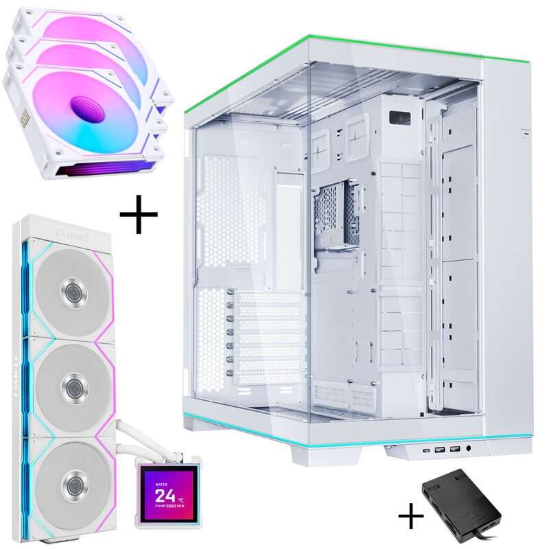 Lian Li O11 Dynamic EVO RGB PC-Gehäuse Bundle HydroShift II LCD-S 360TL AiO + 3x UNI FAN SL-INF 120 Reverse Blade Lüfter – weiß