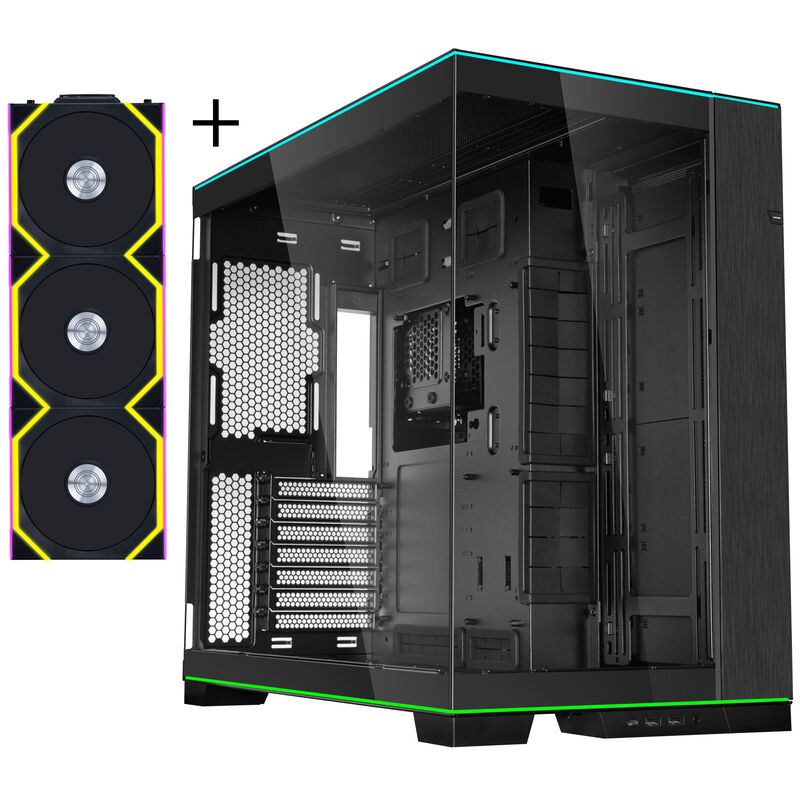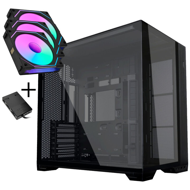 Lian Li O11 Vision Compact PC-Gehäuse Bundle + 3x UNI FAN SL-INF 120 Reverse Blade Lüfter – schwarz